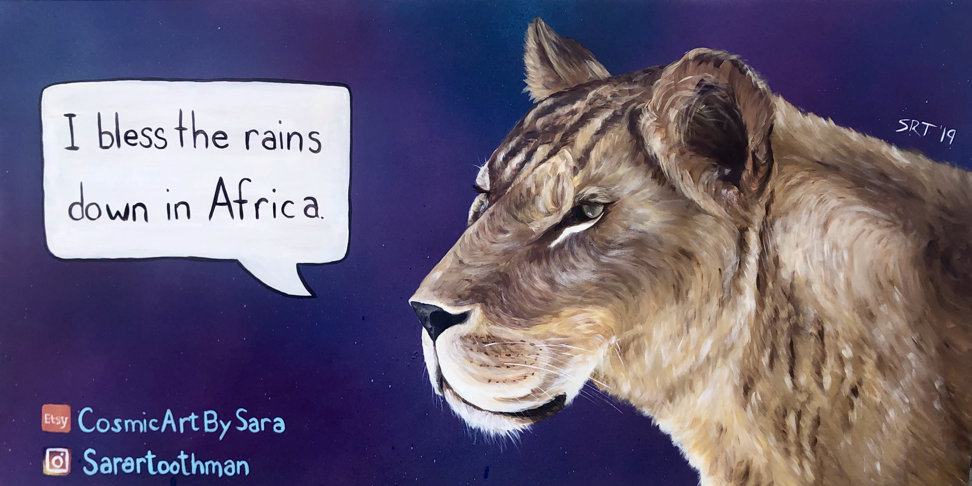 My work focuses primarily on the silly antics of animals coupled with pet portraiture. Occasionally I create fan art of my favorite books or cartoons. Murals are my favorite; I love transforming a space with a large scale painting.